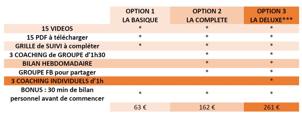 - Option 3 : je mets toutes les chances de mon côté avec mes 3 coaching individuels en plus